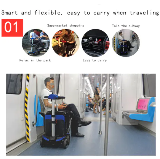 The Transformer scooter has a fully automatic mechanism with remote hand control. Just push a button to fold and unfold the scooter.